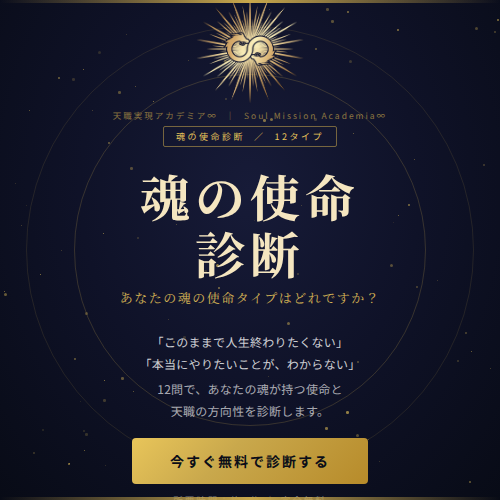 あなたは 何のために生まれてきましたか? 魂の使命に目覚め 「最高の自分」を生きる ▶ 繊細さを才能に変える ▶ 使命を天職へ 🌟魂の使命診断(無料) LINE登録で完全版 👇